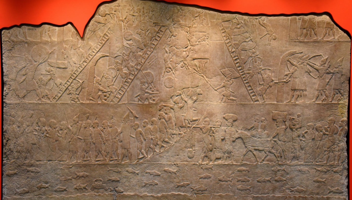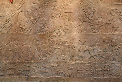 The New Assyrian Empire (starts 911BC and continues to 609BC). The capital was moved to Nineveh, where unfortunately the archaeology is now destroyed after the struggles waged there in recent times. It was largely an agricultural society and the main cities were Assur, Nineveh and Nimrod. The fertility of the soil on the floodplain between the two great rivers enabled the empire to spread widely. Meanwhile in Egypt, between 721 and 707BC, Shabaka, one of the Nubian pharaohs, attacked the Assyrian King Sargon from the south and won; mostly because his enemy was already engaged in fighting his northern foes, so stretched between two fronts. At the Battle of Lachish in 701BC Assyria recovered possession of Nineveh. In the Levant, close to Egypt’s northern border, cities such as Lachish were areas that could cause problems for Egypt. In a similar way to the instillation by some of the Nubian Kings of Amenirdis II and Shepenwepet as God’s Wife of Amun in Thebes, to help the Nubian pharaohs to maintain their power in Egypt, Esarhaddon (681 to 669BC) appointed a Queen in Assyria when the Assyrians were at war with Egypt. Evidence of this was found carved onto pillars and stelae in both countries. Ashurbanipal (669 to 631BC) created the greatest Assyrian empire, based at Nineveh. He was educated, probably literate and often called King of the World, also often seen in carvings killing and fighting with lions. He moved to put down rebellions in areas conquered in Egypt as for south as Thebes, eventually ruling all Egypt for a short time. He even captured and killed members of the Egyptian royal family. Evidence comes from unusual carvings, in the British Museum, of Egyptians fleeing. In 664BC, Tantamani succeeded Taharqa, who had to flee when defeated by Ashurbanipal, and the end of the 25th Dynasty followed. Ashurbanipal died, probably, in 641BC and the Assyrians soon came under attack. A cuneiform tablet records the following, “woe to the Assyrians…….will feel my anger”.
