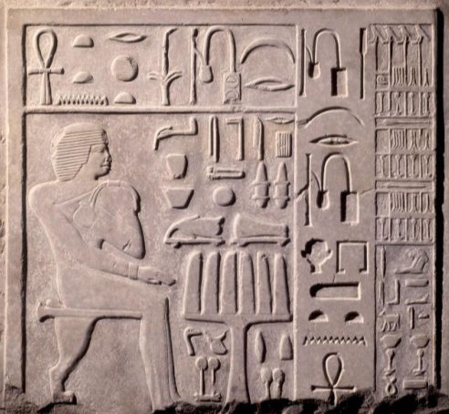 The jewel of the Old Kingdom artefacts is the stela of Niankhtet dating to the end of the 3rd Dynasty and part of Joseph Mayer’s collection, purchased by him from Sands. The stela has both raised and sunken relief and was crafted at the time when decorative themes, which had previously been the sole preserve of royalty, were just starting to be adopted by non-royals. The stela includes many of his titles and images of all the offerings Niankhtet hoped for in the afterlife, incorporating an extensive list of linens and also wine, which was a little unusual. But the most unusual thing about the stela is that it doesn’t include the actual offering formula itself.