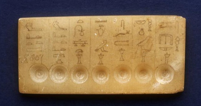 Another absolute gem, smaller but equally spectacular, is a sacred oil tablet with 7 circular depressions; again from Mayer’s collection having been bought in 1850.